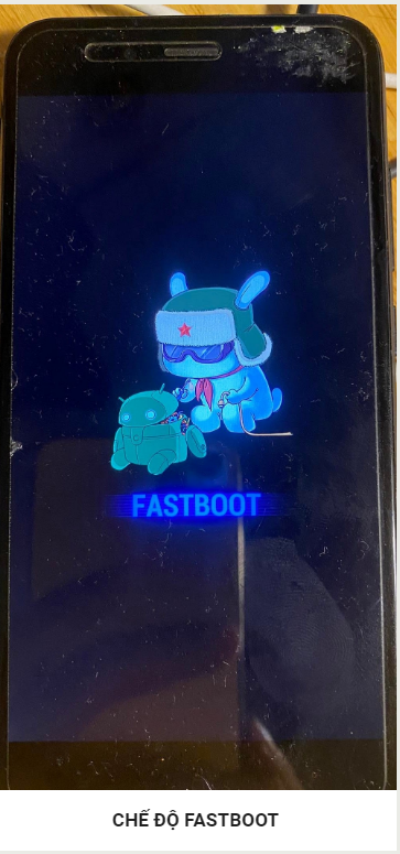 Đưa máy về chế độ fastboot (bằng cách: tắt nguồn điện thoại, sau đó giữ Nguồn + Volume trừ, như hình bên dưới)