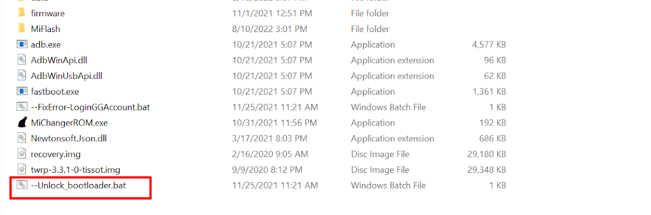 2. Chạy file Unlockbootloader.bat (trong thư mục cài ROM)