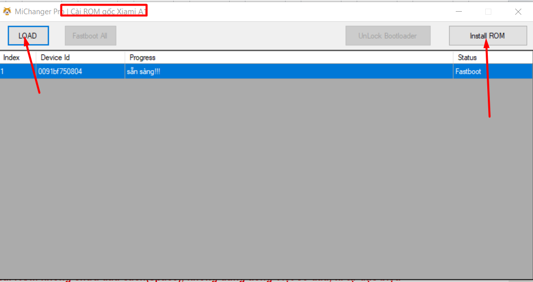 3. Bấm LOAD sau đó bấm Install ROM , để im máy tự cài (quá trình này diễn ra khoảng 5-10 phút)